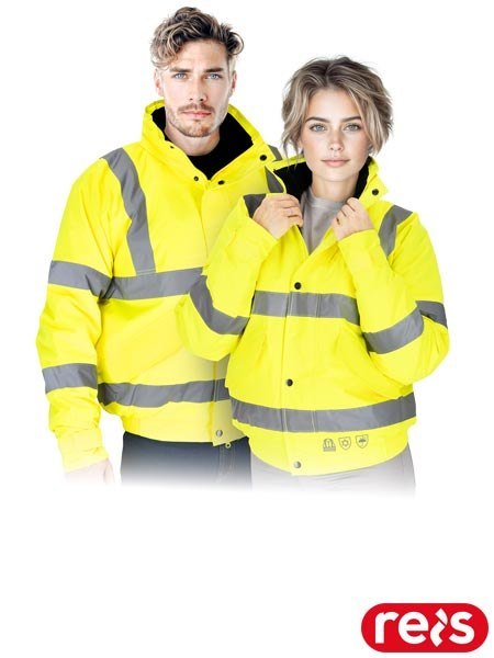 - tkanina we fluorescencyjnym kolorze i pasy odblaskowe zwiększające widoczność