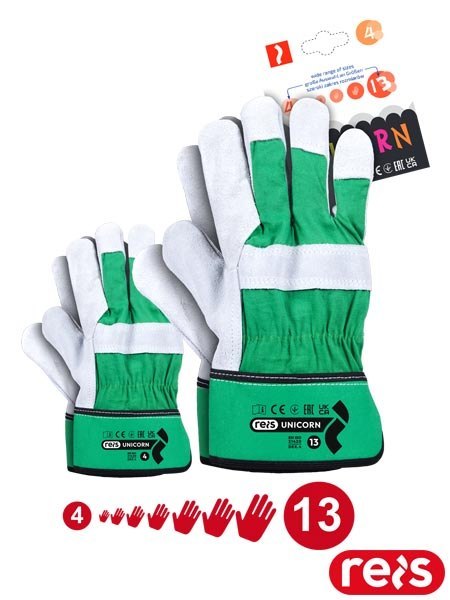 - całodłonicowe - część chwytna wykonana z jednego kawałka skóry, dzięki czemu wykazują większą wytrzymałość i odporność na przetarcia