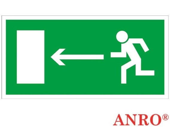 Znak ewakuacyjny „Kierunek do wyjścia drogi ewakuacji w lewo".