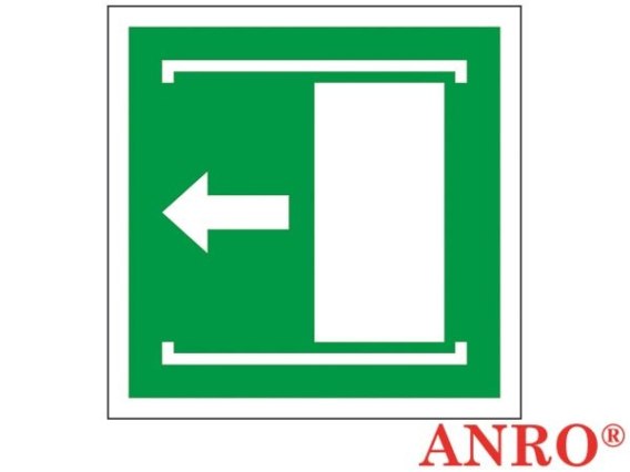 Znak ewakuacyjny „Drzwi przesuwane (w lewo, żeby otworzyć)".